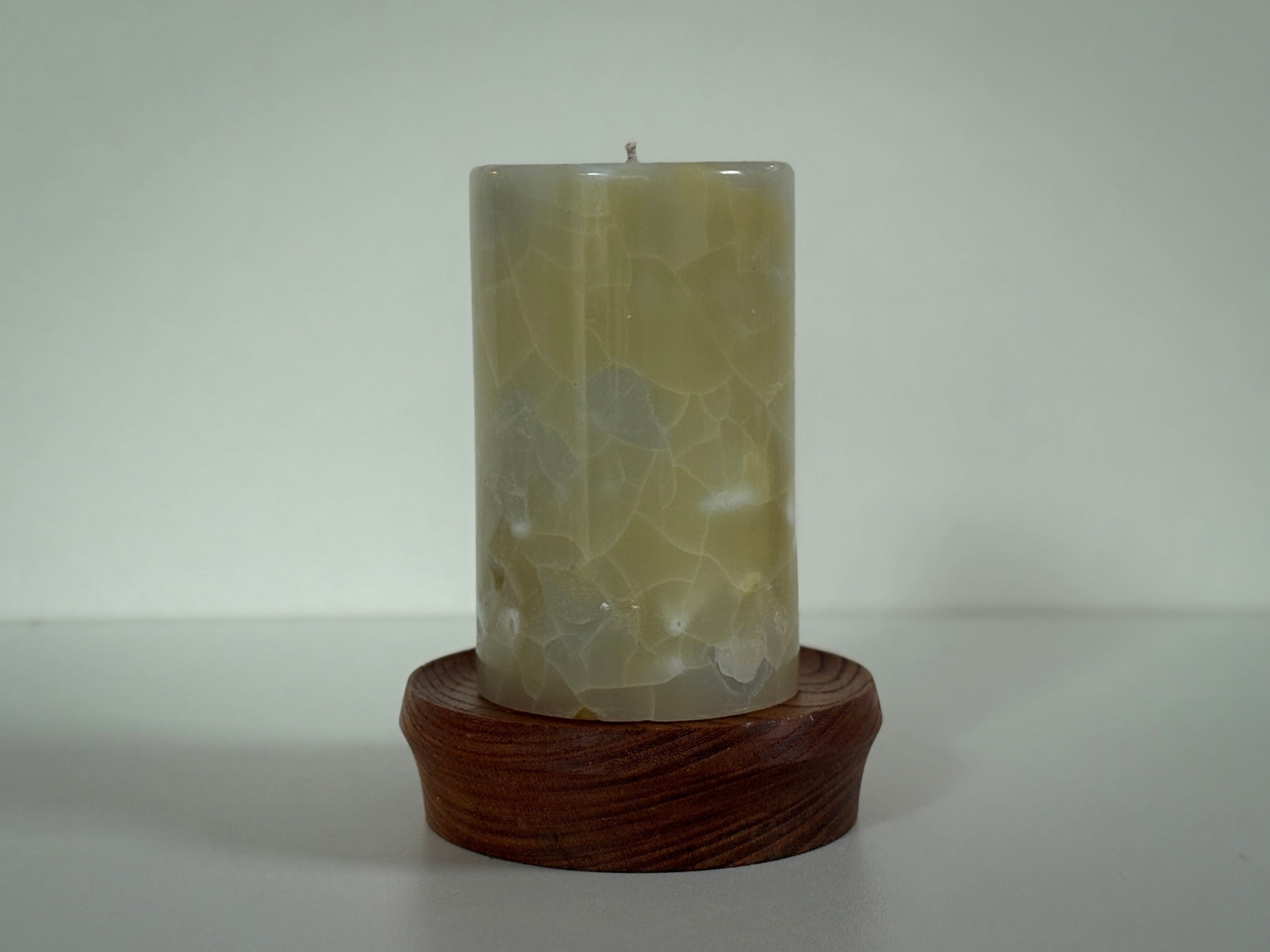 「グラデーション」 は、偶発的に重なる色と、あえて内側から表面に施したヒビが特徴的な蝋燭です。