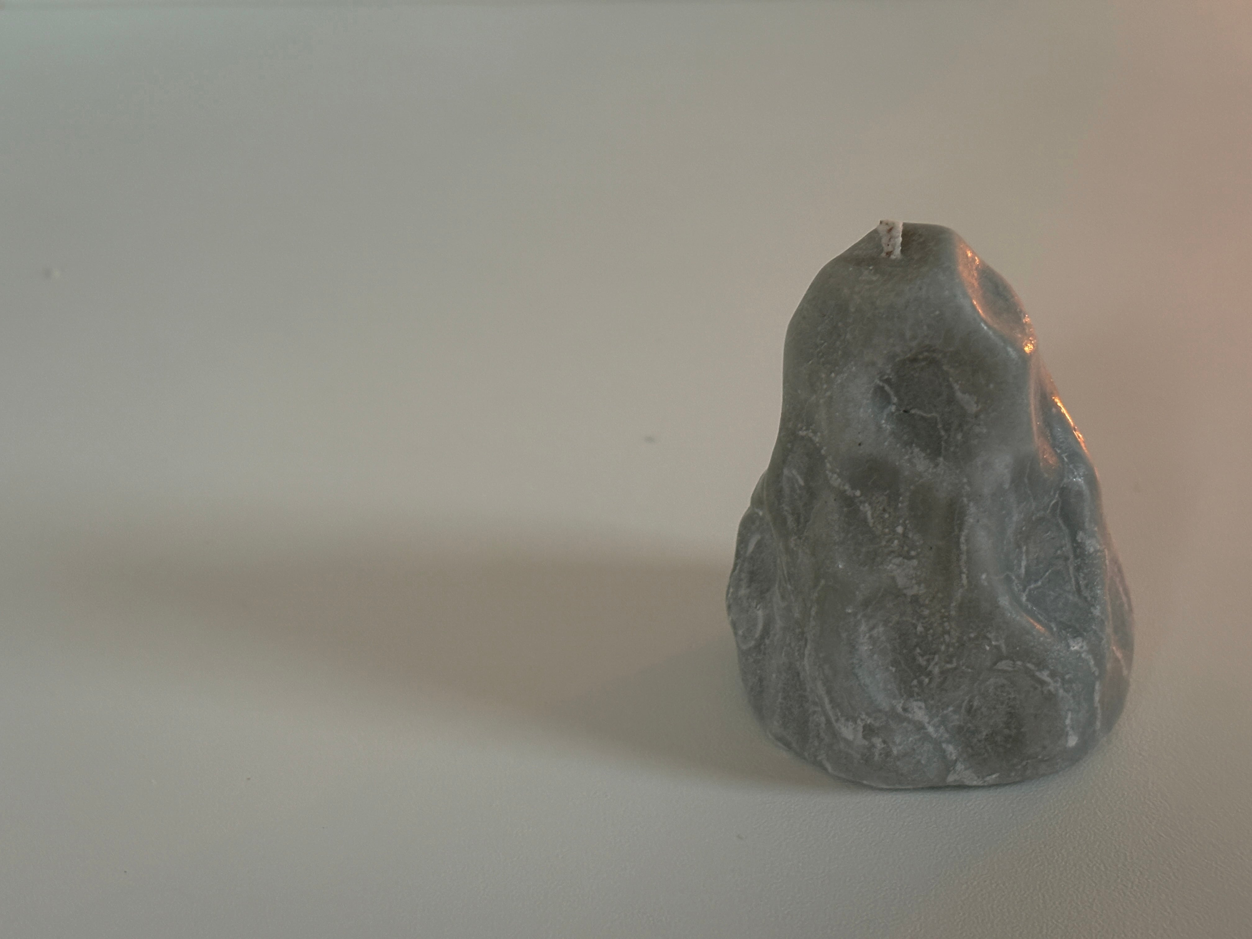 「祠のかみさま」 は、生き物のようなそうでないような、そんな石ころをイメージした蝋燭です。